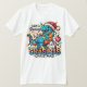 "Festive Dino," featuring a cheerful T-Rex in a Santa hat tangled in glowing Christmas lights with the caption "Have a Roaring Christmas!"