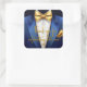 Mens royal blue and gold birthday party stickers with classy royal blue and gold tuxedo. These royal blue and gold birthday party favor stickers are easily personalized for your event by changing the text as needed. These tuxedo gift tags are great for corporate events, retirements, and any black tie formal event.