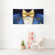Mens blue and gold birthday party banner with blue tuxedo, gold bowtie and gold pocket square. This blue and gold birthday party banner is easily personalized for your event by changing the text as needed. This tuxedo party and event banner works well for corporate events, retirements, bachelor parties and any black tie formal event. Ad your text, logo, images, etc., to personalize.