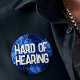 Let people know about your medical needs with this tropical badge by JessicaAmber. This button features the slogan 'Hard of Hearing' in a bold white font, surrounded by a pattern of blue monstera leaves, on a black background. You can edit the text as needed. A great accessory for your next summer vacation. 🌿 For more deafness pins, visit my Zazzle store Zazzle.com/DriftwoodAndDreams 🌿 For custom orders, message me on Zazzle