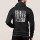 This men's hoodie jacket is shown in black with a cheer print.