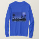 Long sleeved casual shirt for men with crew neck is shown in Blue. Graphic printed on depicts the Wise men visiting the Holy Birth in the manager. Text reads Merry Christmas. Customize or buy as is.