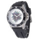 * This is a classic stylish black Men's watch. There is a cool metallic crystal sphere made up of blue and turquoise and purple fuchsia magenta crystals.