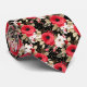 This men's dress tie is shown in a lovely black and red multi color floral print design.