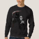 This men's sweatshirt is shown in black with a scary Halloween grim reaper print design.