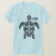 Men's t-shirt is shown in light blue with a Hawaiian turtle print.