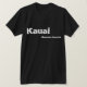 Men's t-shirt is shown in black with white special text: Kauai, Hawaiian Islands. Customize this item or buy as is.
