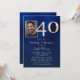 Men's Navy Blue and Gold 40th Birthday Invitation