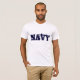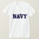 Men's t-shirt is shown in White with text that reads Navy.
