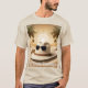 This a Men's Off Duty Teacher T-Shirt. The vacation design was created with generative art. The artwork features a bright sun, palm trees, sand and a man's hat with sunglasses. The t-shirt shown is a sand color. Off Duty Teacher is on the bottom of the image in silver text. You can change the text by clicking the Personalize button. The t-shirt is unisex sizing. The shirt is made of 100% cotton.