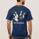 T-Shirt with a bowling ball and pins, personalized with your team name on the back, and your name on the front. (Choose your color shirt. Not recommended on a black shirt.)