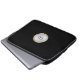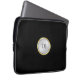 An classic professional look for your laptop or tablet device, this computer sleeve features a silver and gold round disc with custom monogram that you can edit with your desired initials. The contrasting black background color may also be changed to another color if you prefer. Simply select the "customize it" button and choose a different background color.