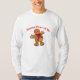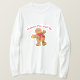 Crew neck and long sleeves t-shirt for men is shown in white with a holiday gingerbread man graphic. Text in red reads: Wanna Piece of Me.