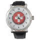 Men's Vintage Black Leather Strap Watch Switzerland Flag