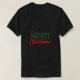 The t-shirt design features the text "Merry Christmas" in bright, cheerful colors, printed on a white T-shirt with a vintage, faded effect. The design is festive and celebratory, perfect for the Christmas season.