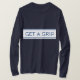 This men's long sleeve t-shirt is shown with a get a grip graphic print.