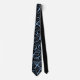 Men's tie is shown in black with a blue tone ribbon print.