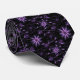 This men's dress tie is shown in a black and purple floral print.