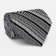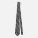 This men's dress tie is shown in a lovely black and white stripes print design.
