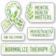 Mental Health Awareness sticker pack. Mental health matters flower. In may we wear green mental health awareness stickers. Green plants and watercolor aesthetic. End the stigma and normalize therapy.