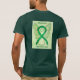 Mental Health awareness uses a green ribbon for its cause awareness. The shirt art features a green awareness ribbon angel painting. The awareness angel t-shirt message notes "Mental Health Awareness". There is a large image on the back of the shirt and a smaller picture on the front of the shirt. The green awareness angel ribbon art apparel can be customized with personalized messages to make great cause event clothing for fundraiser shirts, group team walk shirts, awareness tshirt gifts, or other special cause events occasions for merchandise to help increase this cause's awareness in public for society's help in creating help & cause change.