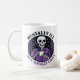 Embrace the chill with this honest and hilarious "Mentally Ill But Totally Chill" mug! The design features a stylized skeleton wearing a purple shirt, taking a calm sip of coffee, and framed by a laurel wreath and starry background.
