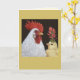 Rooster with admiring peep wearing Indian paintbrush hat
