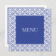 Host the perfect dinner party or event with this elegant two sided blue and white border menu card.
