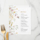 This romantic menu features watercolor pink and yellow wildflowers, rustic chamomile, greenery leaves and twigs.