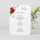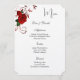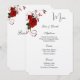 This Menu Card template is shown on the felt ecru paper with a lovely red rose print design. Script and standard text in black.