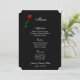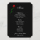 Menu Card shown on basic paper in black and with a single red rose print. At the bottom is the Bride and Groom's names and wedding date to commemorate your event. Script and standard text in white. Customize your names and menu items by clicking customize button, look to right and find appropriate boxes to change to your information. Wishing you best wishes for your Wedding Day.