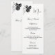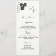 This Menu Card template is shown on the basic paper in white with a lovely black rose print design. Script and standard text in a black color.