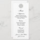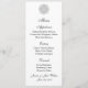 Menu Card shown on basic white paper with a silver floral circle print. At the bottom is the Bride and Groom's names and wedding date to commemorate your event. Script and standard text in black. Customize your names and menu items by clicking customize button, look to right and find appropriate boxes to change to your information. Wishing you best wishes for your Wedding Day.