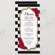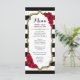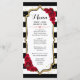 Menu Card. Classy black white red design with faux glitter gold. Floral design features black & white stripes, script font and red roses. Perfect for an elegant party.