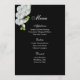 Menu Card shown on basic paper in black with a lovely white orchids print. Script and standard text in white. Customize the menu items by clicking the customize button, look to right and find appropriate boxes to change to your information. Wishing you best wishes for your Wedding Day.