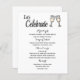 Cheers! Add some bubbly to your wedding or party menus with these charming "Celebrate" champagne menu cards. These black and white invitations features a pair of black champagne glasses with pink blush champagne highlighted with Let's Celebrate printed in a bold black script font. Your your menu options are printed in complementing script and easy-to-read black fonts highlighted against a crisp white background. The back of your invitation features a coordinating white background. You can easily customize this menu with your food options - add or delete the categories, change fonts, colors and styles.