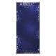 Personalize and add your names, the wedding date and the menu. Navy blue background, white text. The blue color is uneven. Decorated with faux silver glitter, sparkles.