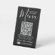 Welcome customers to your business and share your online menu with a custom QR code acrylic tabletop pedestal sign. To create your own QR code using the generator, simply type the website URL into the template. All wording is simple to personalize or delete, and the colors, fonts and logo transparency are also are easy to customize with the Zazzle design tool. The scannable code makes it easy for clients to view a contactless online menu, price list, available services and promotional advertising. The modern black and white design features stylish script calligraphy, elegant minimalist typography, your corporate logo branding, and one QR code. Suitable for small businesses as well as large corporations, this company branded sign provides modern convenience to your customers with chic professional style.