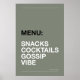 Brighten up your kitchen with humor! “MENU: SNACKS, COCKTAILS, GOSSIP & VIBES” poster in modern typography. Available in multiple color backgrounds, perfect as home decor, gifts, or kitchen wall art.