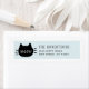 This cute "meow" return address label features a black cat face on a light blue background framed by a white border. Personalize it for your needs. You can find matching products at my store.