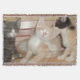 A quality printed throw has its advantages. This is a much finer weave throw than its loopier cousins, and though lighter, it is worth the investment for custom room accessorizing. The back is much prettier than the typical brown, and the fringe on the long sides very vivid, the selvage nicely done. Before photographing, I washed the throw in cold water, delicate, with a thicker woven throw the same size. On tumble dry low, this throw was dry in half the time as the other. This is a very practical quality if you use throws for furniture covers or to wrap up in frequently. The sleekness of the fabric makes it a great layer for accenting or protecting without the feeling of sitting on too much stuff. Perfect for napping or when you feel a light chill coming on. The color printing is beautiful and on this fabric, matched the design and color of my Photoshop image. This is an advantage for blending room fabrics and colors. The fringe on the short sides prints the colors from the design image and therefore varies from the side fringe. I streaked a white fractal line through the plaid pattern to give the illusion of weaving. This printed as crisp as an illusory thread, and put some white in the short side fringe, showing another advantage of print vs loomed- for artistic purposes, line lines, detail, and color integrity can be planned and preserved. My loomed throws have color limitations and more of a needlepoint texture. Print throws reproduce an exact image. The throw felt a little stiff straight out of the package, but this went away in the first delicate wash. Of course I searched the wash water for ink or bleeding and there was none.