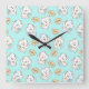 Add a touch of charm and feline fun to your space with this adorable wall clock! Featuring a repeating pattern of white kittens, each with playful expressions and little "Meow" text details, all set on a cheerful aqua blue background.
