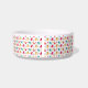Discover our adorable cat bowl featuring a vibrant pattern on a white background. Decorated with playful cartoon cats in blue, orange, and red—some facing forward, others turned to the side—along with colorful fish bones, hearts, paw prints, and cheerful flowers. The fat, short-legged cats with curly tails add a charming touch to your pet's feeding area. Perfect for cat lovers seeking a fun, whimsical design!