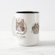 Your morning coffee or evening tea has never felt so purr-fect! This 15 oz two-tone mug features a realistic tabby cat face, surrounded by charming hearts and golden leaves, along with the magical phrase: