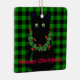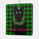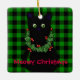 Cute black cat holiday design - green and red garland- buffalo plaid-