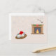 Bring warmth and charm to your holiday season with this cozy Christmas illustration featuring a sweet sleeping kitten in a Santa hat curled up by a glowing fireplace. Soft winter tones, gentle snowflakes, and Santa’s sleigh drifting across the sky create the perfect blend of comfort and festive cheer.