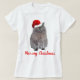 This adorable t-shirt features a photograph of my own cat, named Kitty, with a Santa Hat on her head. It also includes text saying "Meowy Christmas".