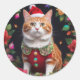 A royal cat wearing a santa Claus costume with a floral background , vintage design