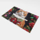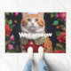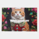 A royal cat wearing a santa Claus costume with a floral background , vintage design