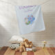 A customisable nursery baby blanket in blue theme with an undersea illustration of a mercat (mermaid cat) with fishes, jellyfish, seahorse. You can customize both the name and date.